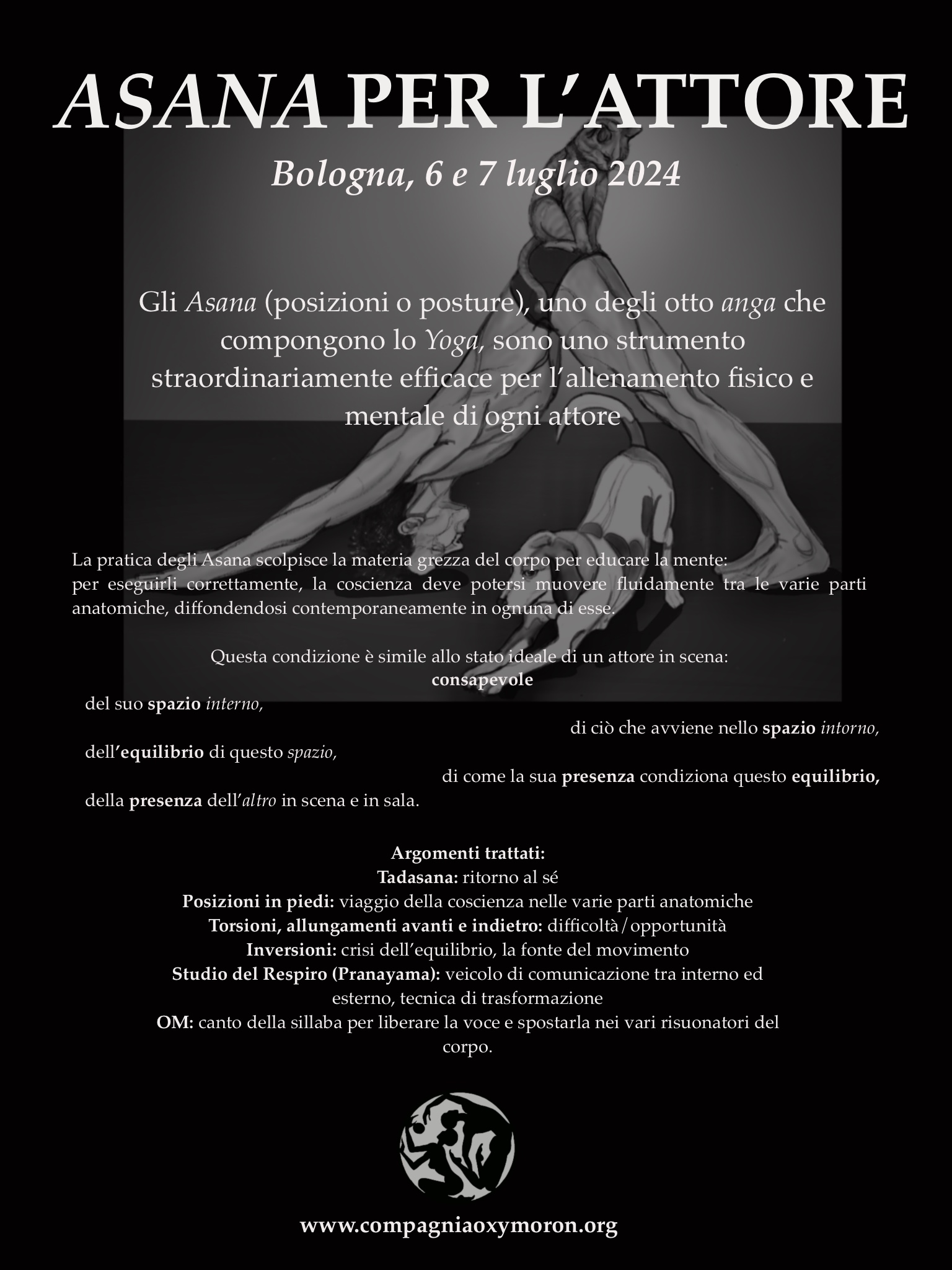 Oltre a questo, un nuovo laboratorio di Alice, “Asana per l’attore” traccia un primo passo esplicito verso l’integrazione del nostro interesse ventennale per lo yoga con il metodo teatrale Oxymoron.