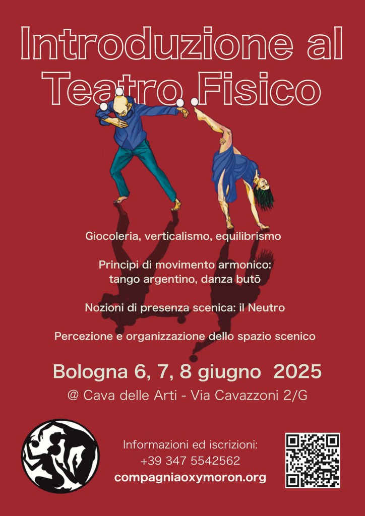 Nel teatro fisico, il Corpo dell’attore è il testo, la musica, la scenografia, la storia della messa in scena. Lo sviluppo delle sue potenzialità tecniche e espressive è il fondamento della pratica di ogni attore, acrobata, danzatore, giocoliere, musicista. Stare davanti a un pubblico confortevolmente è una capacità utile a ognuno di noi che può aiutarci a superare l’ansia sociale di comunicare con un pubblico.